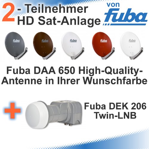 Fuba DAA 650 HD Sat Anlage - 2 Teilnehmer (DEK 206) - Sat Anlage bestehend aus Fuba DAA 650 in Ihrer Wunschfarbe + Fuba DEK 206 Twin LNB