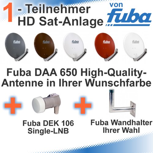 Fuba DAA 650 HD Sat Anlage - 4 Teilnehmer (DEK 106) - Sat Anlage bestehend aus Fuba DAA 650 in Ihrer Wunschfarbe + Fuba DEK 106 Single LNB + Fuba Wandhalter