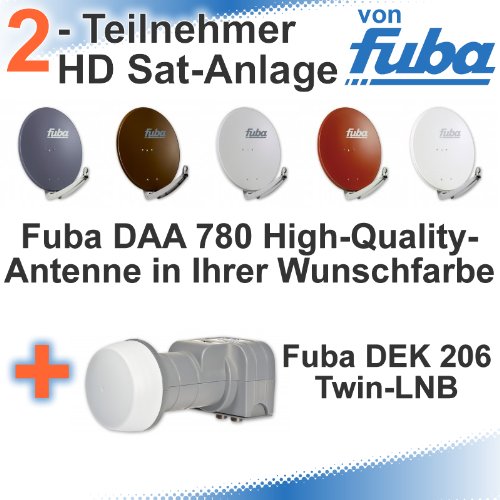 Fuba DAA 780 HD Sat Anlage - 2 Teilnehmer (DEK 206) - Sat Anlage bestehend aus Fuba DAA 780 in Ihrer Wunschfarbe + Fuba DEK 206 Twin LNB