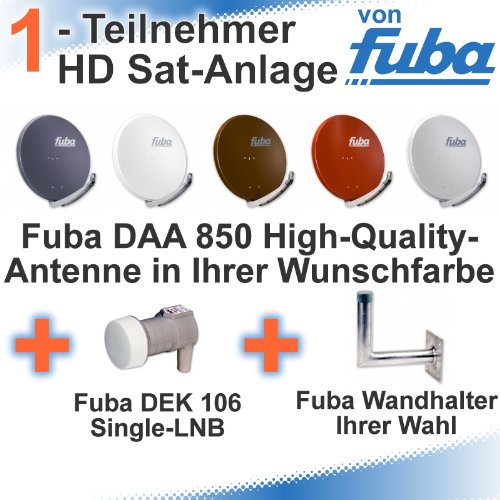 Fuba DAA 850 HD Sat Anlage - 1 Teilnehmer (m. DEK 106) - Sat Anlage bestehend aus Fuba DAA 850 in Ihrer Wunschfarbe + Fuba DEK 106 Single LNB + Fuba Wandhalter