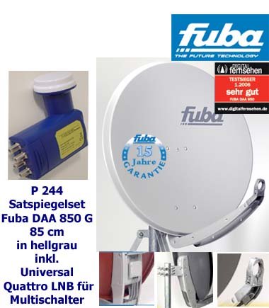- P244 Fuba Satspiegel DAA 850 grau, Universal Quad LNB
