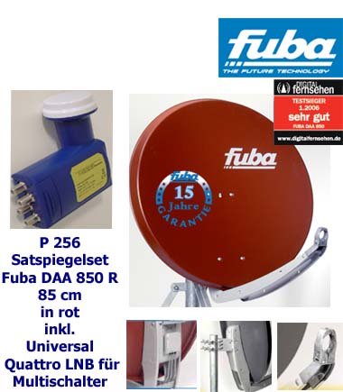 - P256 Fuba Satspiegel DAA 850 rot, Universal Quad LNB