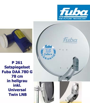 P261 Fuba Satspiegel DAA 780 grau, Universal Twin LNB
