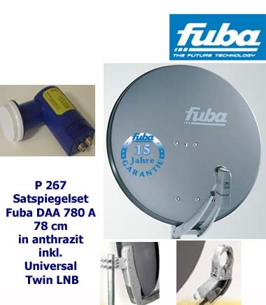 - P267 Fuba Satspiegel DAA780 anthr., Universal Twin LNB