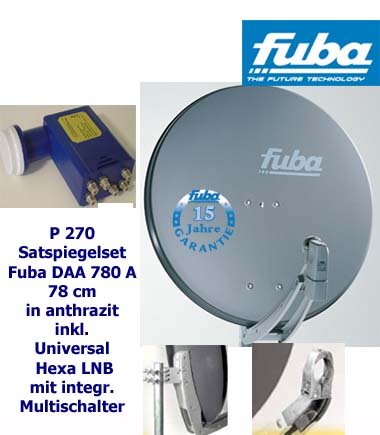 P270 Fuba Satspiegel DAA780 anthr. Universal Hexa LNB