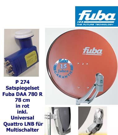 - P274 Fuba Satspiegel DAA780 rot, Universal Quad LNB