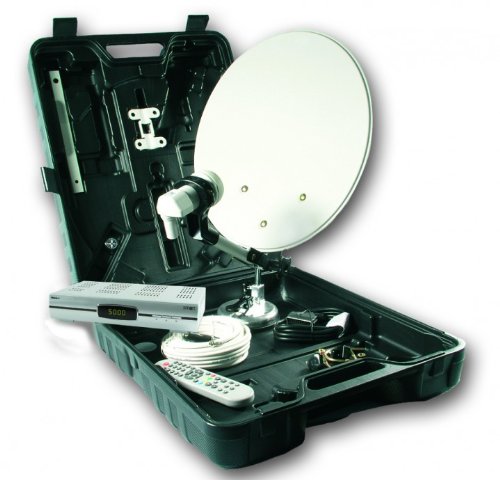 Die Mobile Satanlage im robusten Koffer von Smart Electronic eignet sich optimal für Camper und Räume in denen nur ein 12 Volt-Stromanschluss vorhanden ist. Die Anlage wird einfach ausgepackt und mit Hilfe des Multifunktions-Standfuß mit diversen Befestigungsmöglichkeiten für Balkon, Hauswand, Tisch oder mit dem stabilen Saugfuß für glatte Flächen befestigt. Alle benötigten Kabel zur Inbetriebnahme befinden sich im Lieferumfang, sodass man direkt sein Wunschprogramm genießen kann. Der digitale DVB-S-Receiver mit 4000 Programmspeicherplätzen und EPG (Elektronischer Programm Guide) ist vorprogrammiert für den Empfang von unverschlüsselten Programmen der Satelliten Astra, Hotbird und Türksat.