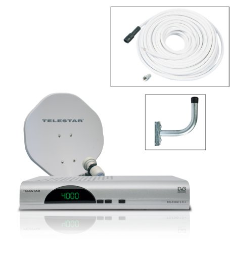 Telestar 5103541-AB Telestar DVB-S SD Komplettset (Alurapid 45 Offsetspiegel, Skysingle LNB, Teledigi 3 S+ Digital-Receiver inkl. 10 m Kabel und Wandhalter) beige