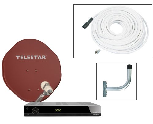 Telestar 5103548-AR Telestar DVB-S HD Komplettset (Alurapid 45 Offsetspiegel, Skysingle-LNB, Telestar Diginova Digitaler HDTV Satellitenreceiver inkl. 10 m Kabel und Wandhalter) rot