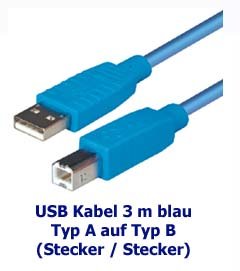 - USB Kabel Typ A auf Typ B (Stecker/Stecker) blau 3 m