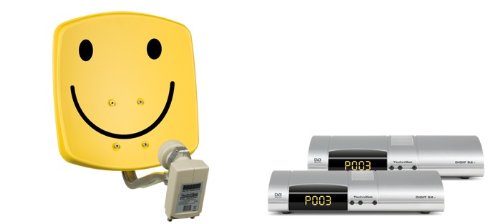 Zwei-Teilnehmer-Set DigiDish 33 (smiley) mit Universal-Twin-LNB + 2x DIGIT S2 e, 10m Kabel